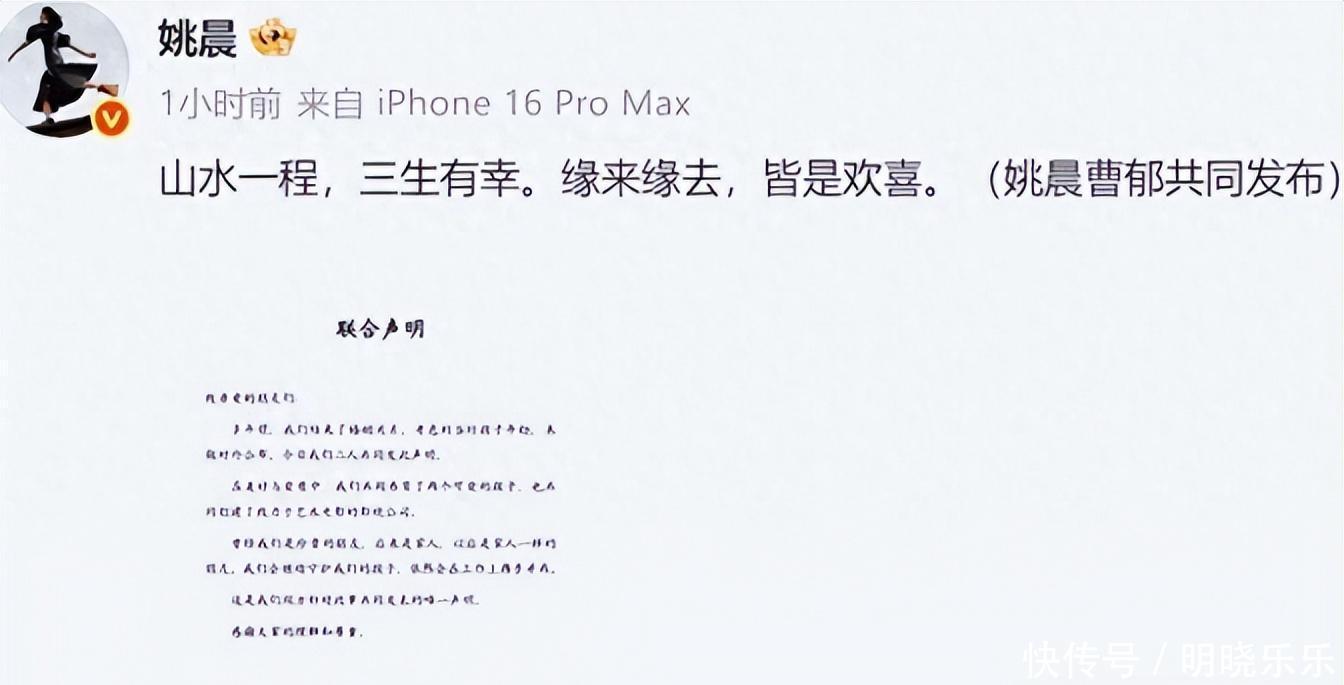 姚晨和曹郁那句“山水一程,三生有幸”的离婚声明,看着挺体面,可大伙儿压根没心思祝福,反倒把十五年前的旧账全翻了出来。你说这事儿闹的,明明是想好聚好散,结果网友们的注意力全跑偏了,一股脑盯着当年的出轨传闻猛挖。